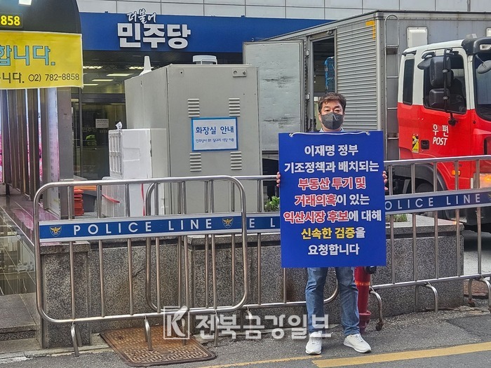 본인을 민주당 권리당원이라고 밝힌 50대 박모 씨는 지난 3일 익산시청 브리핑 룸에서 기자회견을 통해 최정호 후보와 관련해 제기된 부동산 거래 사안에 대해 해명 없는 상황을 지적하며 공개적인 설명과 정당 차원의 공정한 검증을 촉구했다.