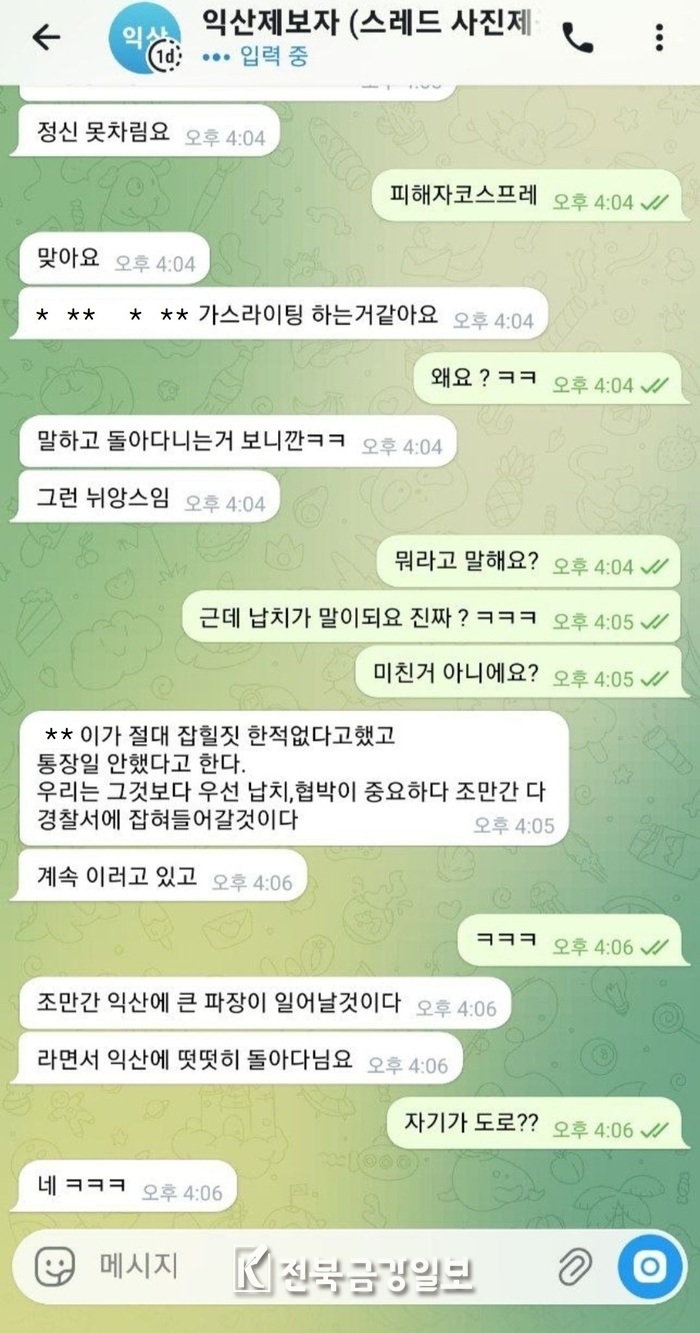 이와 관련해 ‘표검사’가 지난 3월 22일과 25일 공개된 ‘공개 질의’ 형식으로 올린 폭로 글은 텔레그램과 SNS를 통해 빠르게 확산됐고, 익산지역 내 인물들과 범죄조직 간 유착 가능성까지 제기되며 논란이 커지고 있는 상황이다.