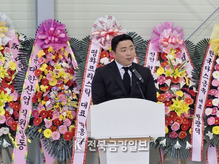 축사에 나선 송태규 더불어민주당 익산시갑지역위원장도 “대한산업의 제2공장 완공과 새로운 시작을 진심으로 축하한다”며 “앞으로도 단순히 산업의 한 축을 담당하는 기업이 아닌 지구의 미래를 지키는 기업이 되길 바란다”고 축하메세지를 전했다.